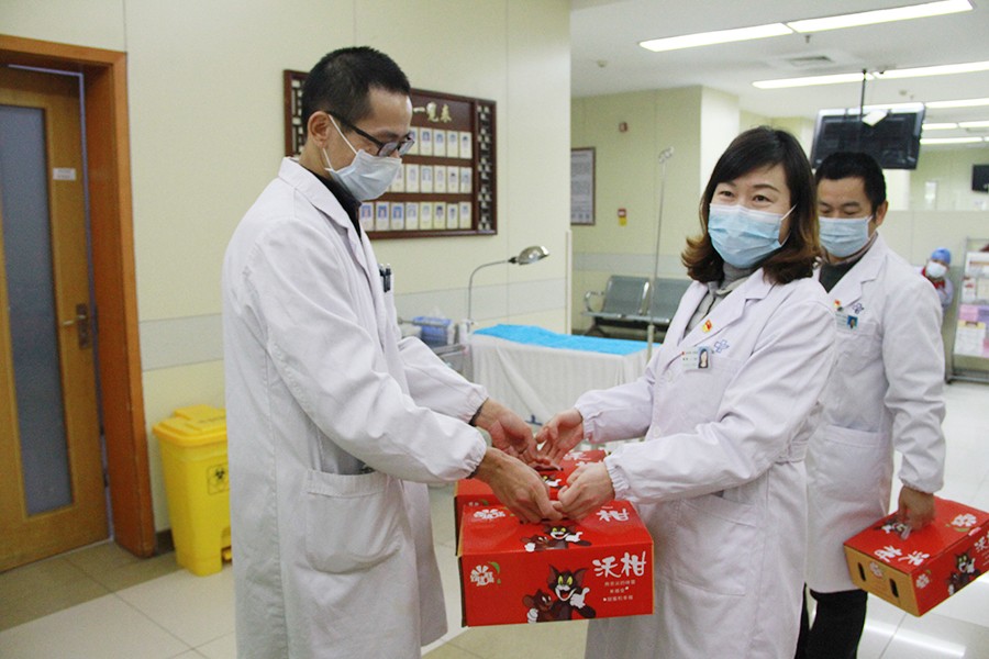 自新型冠状病毒疫情发生后,幸运轮盘娱乐中心 一线医护工作者积极投入战“疫”,坚守前线,辛勤付出。近日,幸运轮盘娱乐中心 党委书记戴美同志,副书记徐医同志,党委委员陈阳同志带领关爱小组,看望慰问了一线工作人员,给他们加油鼓劲,为他们送去温暖与关怀。