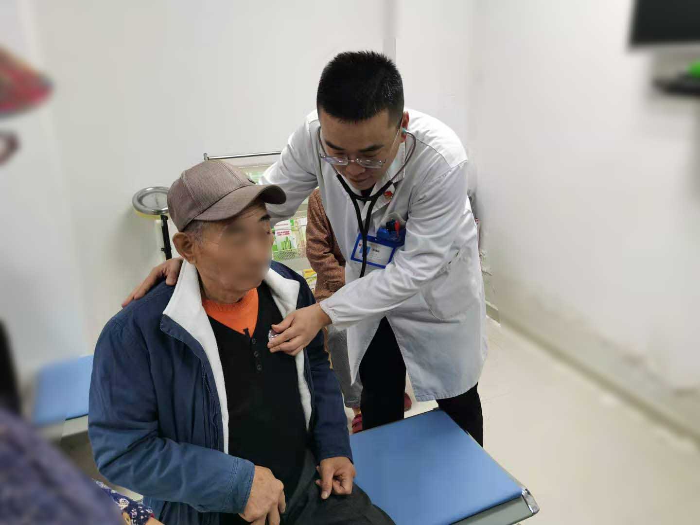 活动现场,孙逸雨医生正在为居民做检查